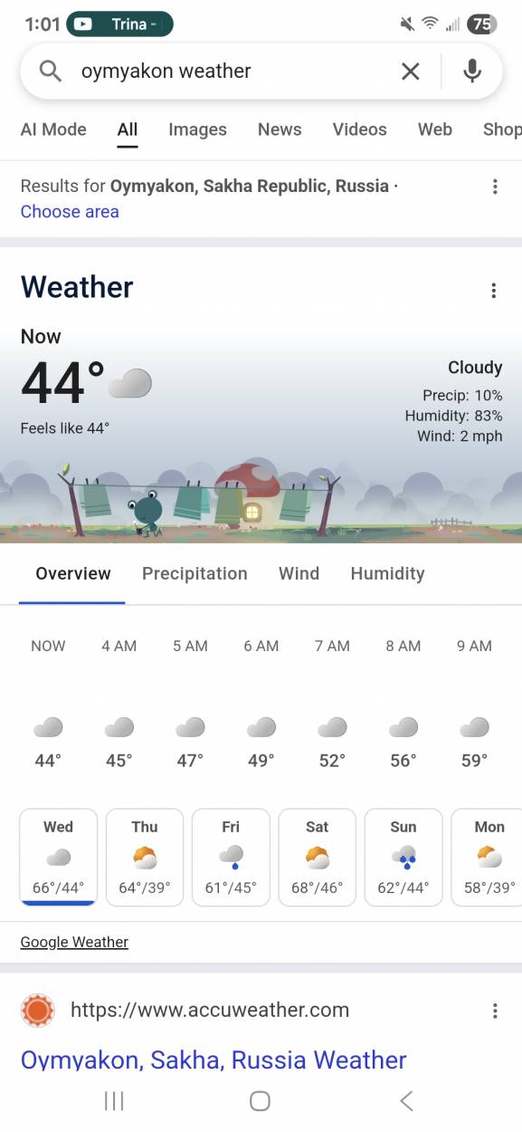 It's 44 degrees F right now in my hometown of Oymyakon.