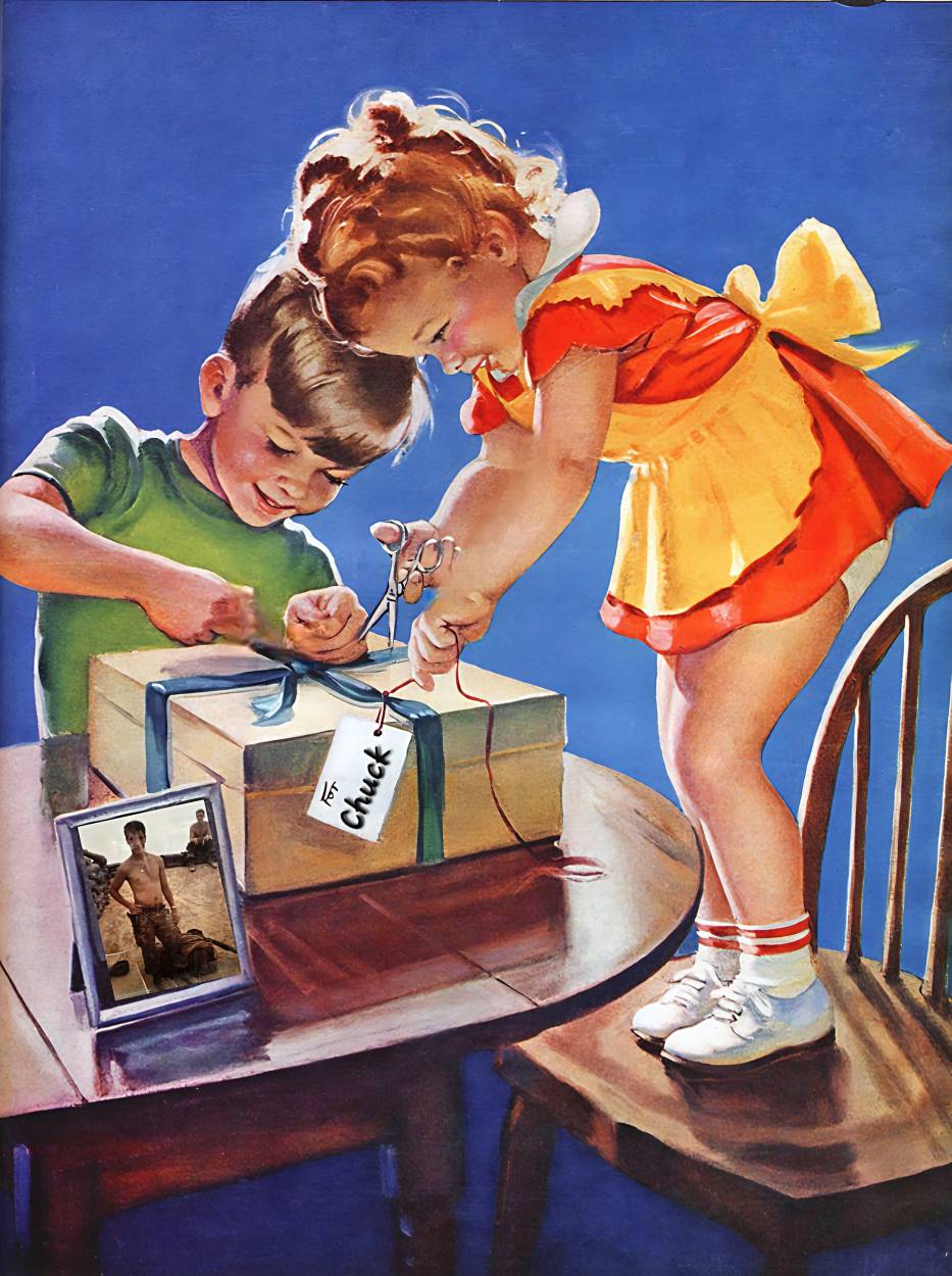 Miss Robin and I sending Chuck a care package while he was in the Marine Corps over in Vietnam: cigarettes, adult magazines, and candy. 🇺🇸🦅🇺🇸