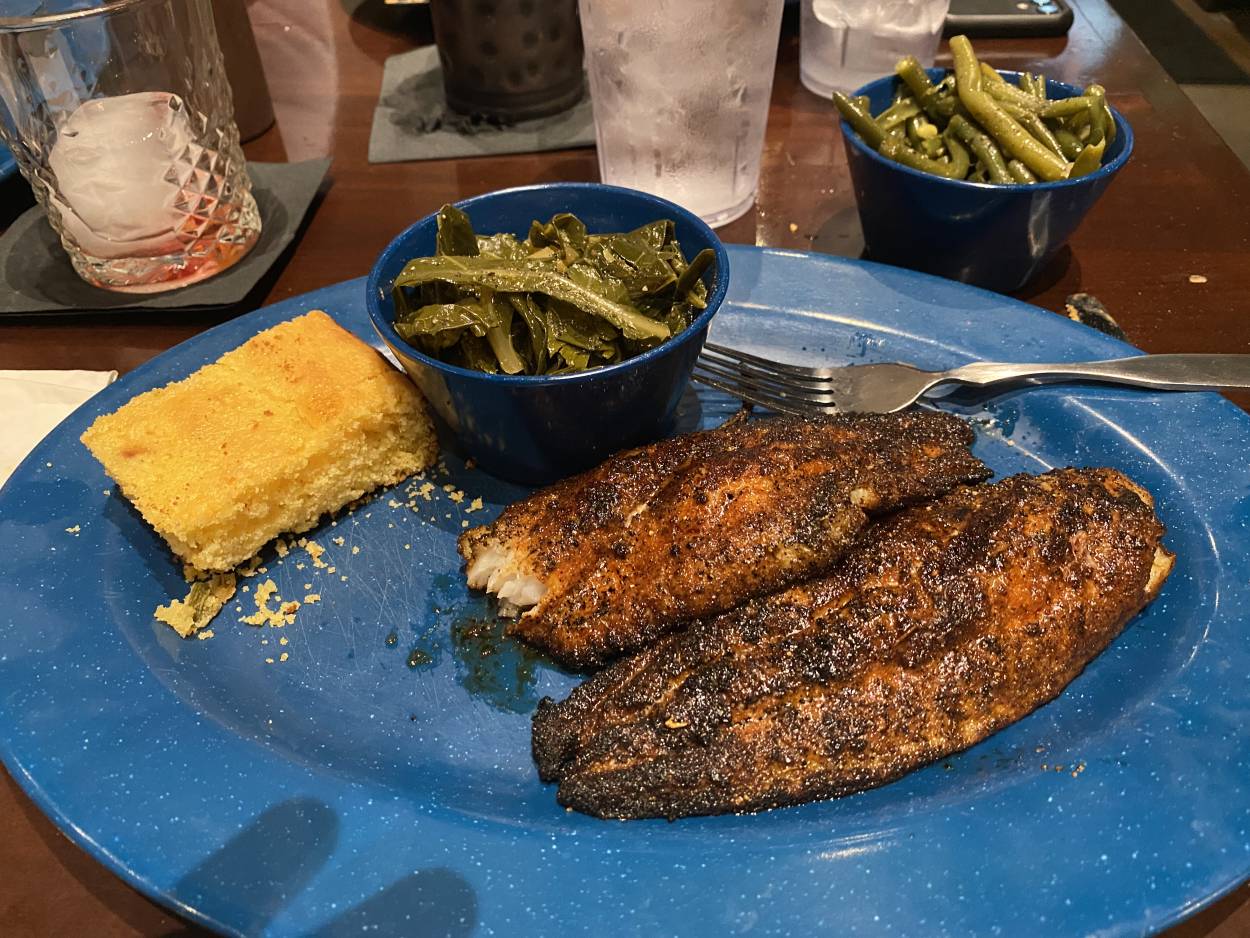 Greetings from Bartow Florida! Last night of our sales meetings trip. Out tonight with most of the team. Eating at Mojo Federal Swine and Spirits in Lakeland. Blackened Catfish with Collards and Green beans, Jimmy Beam Manhattan in honor of Chu. Hope you are all doing wellโฆ. Breakfast meeting in the morning and out by 1300 eastern time๐ Will be good to be home and see Tina, enjoy your time, wherever you are ๐