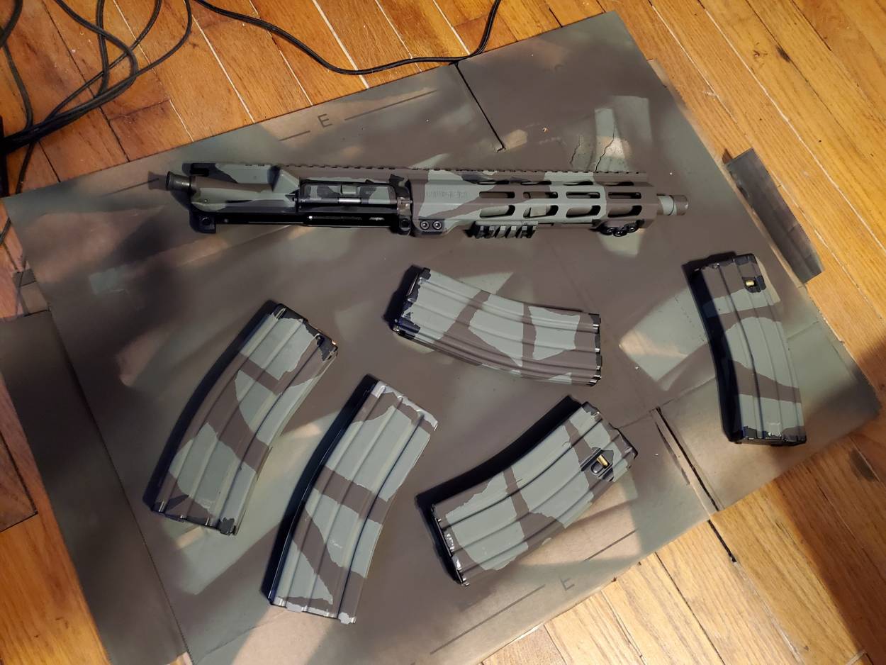 Done with the upper and metal mags. Plastic mags and lower have their OD green curing now and getting brown tomorrow. Then I'll have to figure out how I'm gonna do the optics and whatnots.