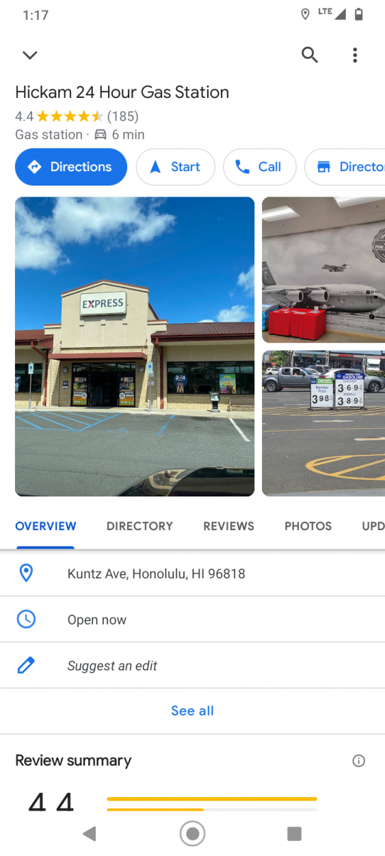 Returning the rental car getting a Uber to the ship. Told her the address to top off with fuel. She said what the hell is wrong with you.