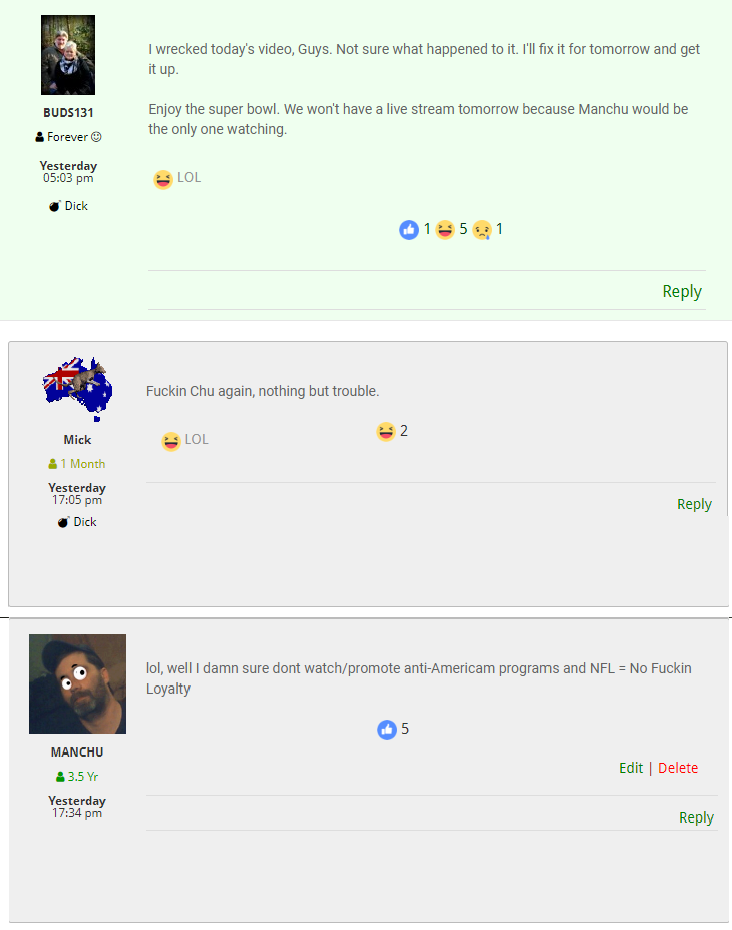Enjoy the super bowl. We won't have a live stream tomorrow because Manchu would be the only one watching.