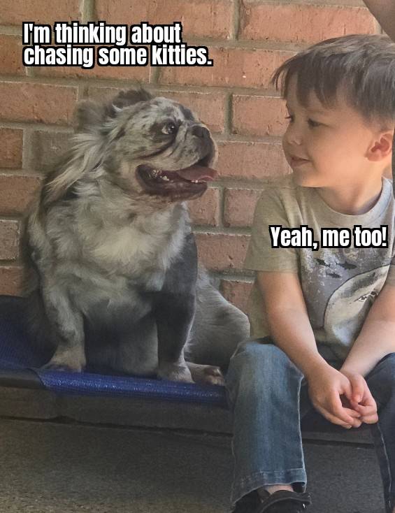 Grandkids are the best. Here's my grandson Benny and my frenchie, Missy.