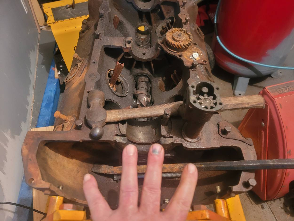 Well poop. Flathead , ball peen hammer , crowbar . Finger . One of these things are not like the others . Flathead update.. camshaft seased . Its a hammer fire and tong . You tube posters say to find a Flathead not cracked is extremely rare .