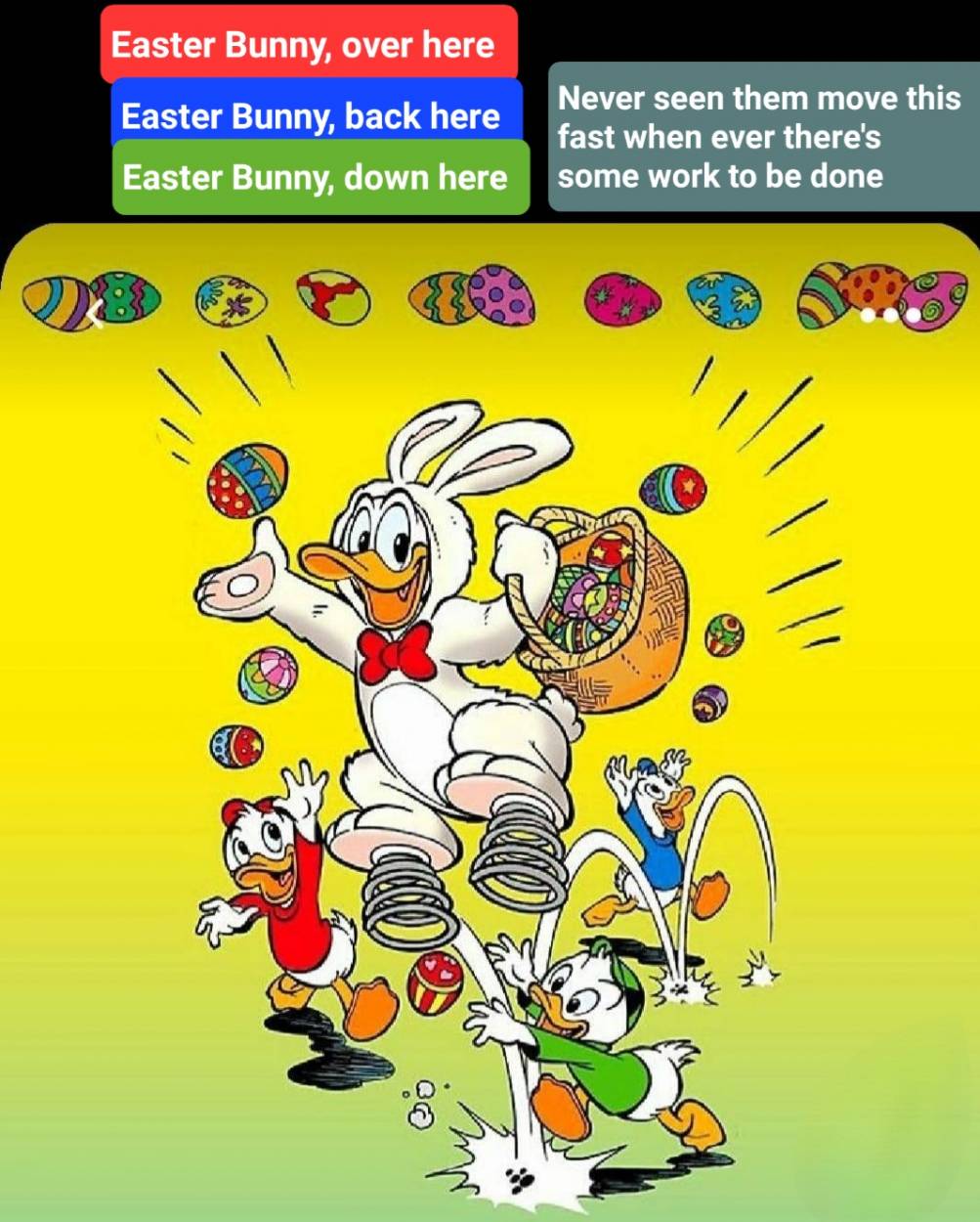 MOM: It was so nice of our good neighbor Hef to dress up as the Easter Bunny for the boys, it means the world to them. I hope he hasn't been drinking today with having to run and bounce like that. The boys know the Easter Bunny has a fortune in candy. If Hef thinks they'll let any of that go, he's mad, he's got another thing coming...🐰