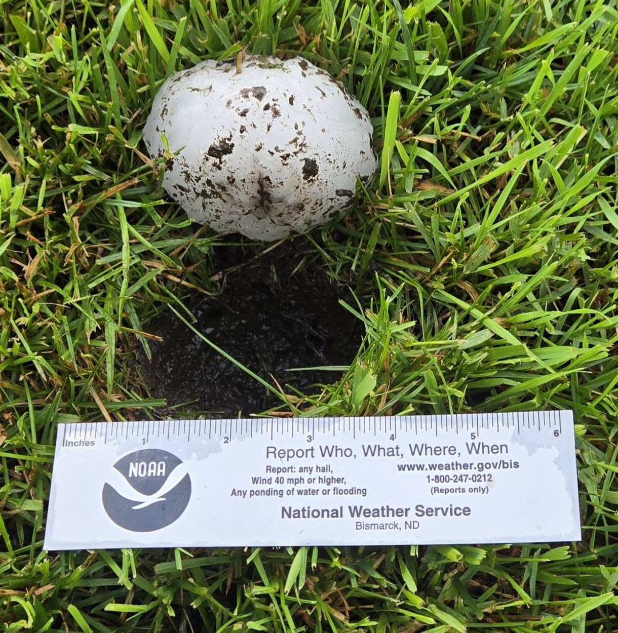 Interesting weather. Hail stone next to it's crater.