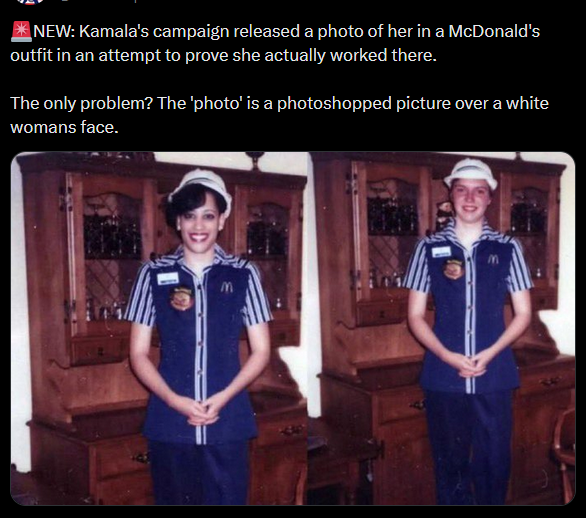 Democrats are scared shitless Commodore Harris produced a picture to refute the claim from Trump she never worked at McDonald’s