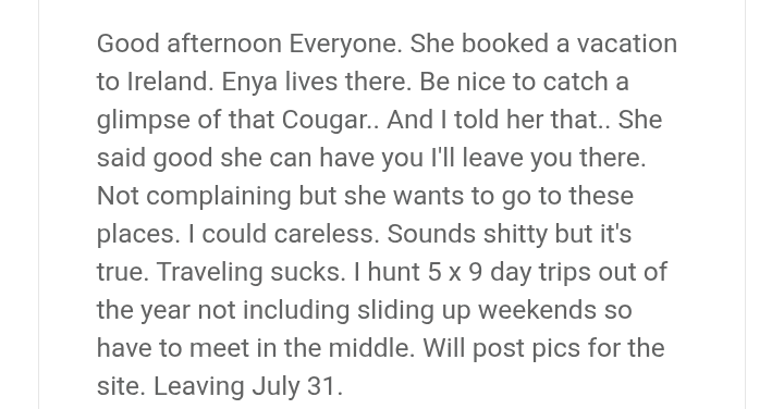 Trollin through, IB is heartbroken and goin to Ireland to see the LUST of his life, Rosie Odonell, let’s hope his wife is big enough to pry his hands off the “other’ Rosie….