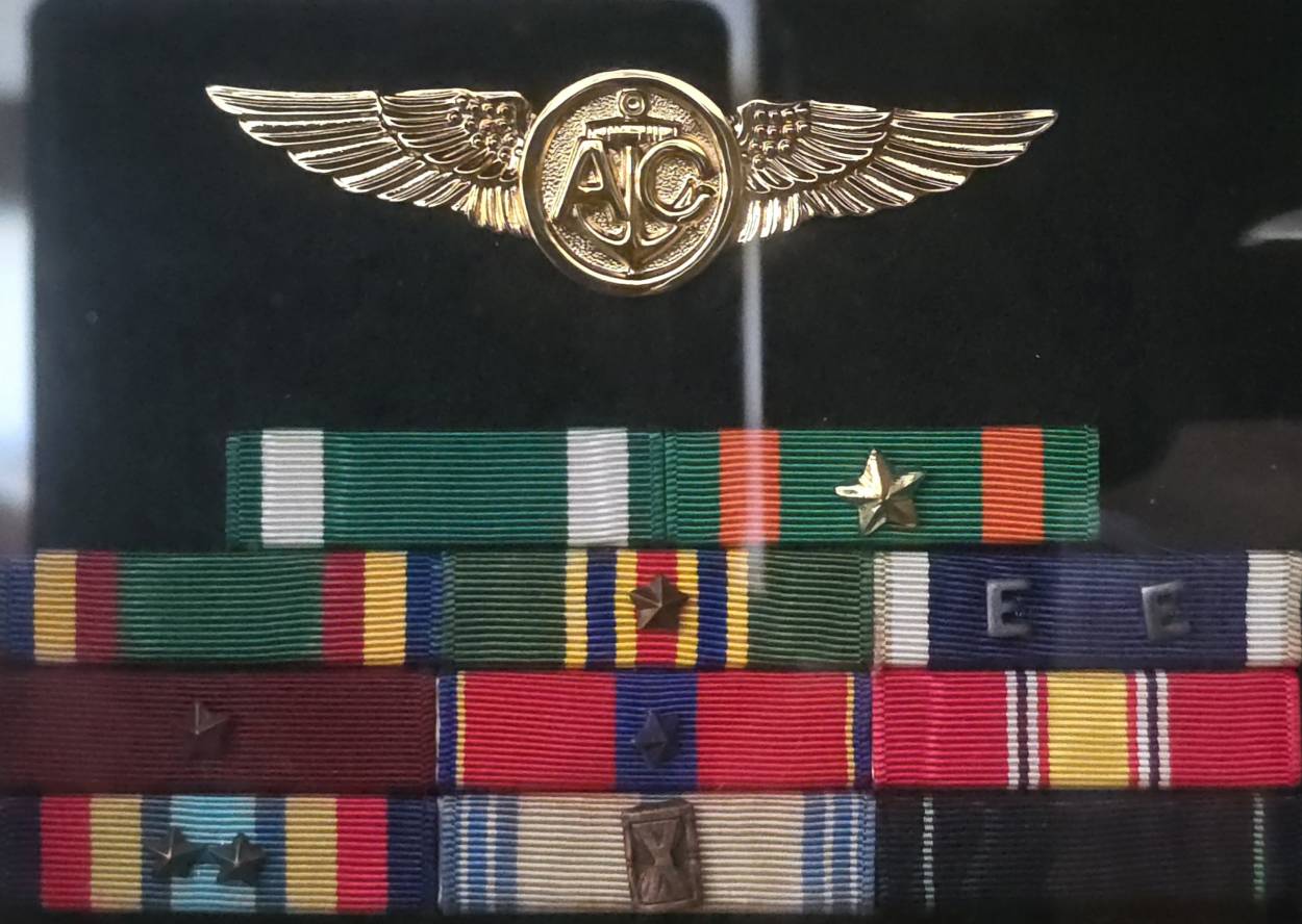 Just for shits and grins, asked AI to tell me about my wings and ribbons. And this is what AI said. "The image displays a display case of military memorabilia, featuring a U.S. Navy Naval Aviator insignia (also known as wings) and several military service ribbons. The top gold insignia is the Naval Aviator badge worn by officers who have qualified as pilots. The ribbons below represent various honors, including the Navy Cross (top row, green ribbon), Distinguished Flying Cross (second row, blue ribbon with white/red stripes), and Purple Heart (third row, purple ribbon). " Would you look at that? Just look at it. LOL just can't make this shit up. AI can, but I can't.