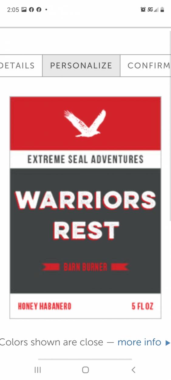 Quick screenshot, just ordered the labels for the 2 hot sauces i made for the boys coming down to Warriors Rest...heres one label. The ingredients & nutrition facts are confidential of course 😎...